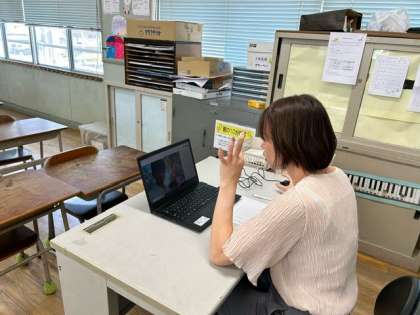 担任の先生の呼びかけに、子どもたちが画面越しにこたえています。