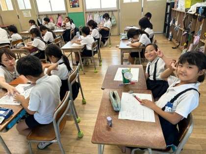 どの季節のどの食べものが好きかを それぞれ考えてワークに書き、発表しました。