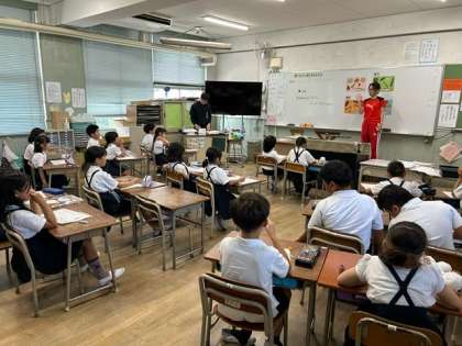 2年生の栄養指導のテーマは「食べ物と友だちになろう」です。