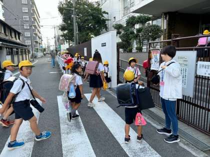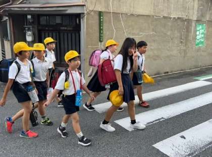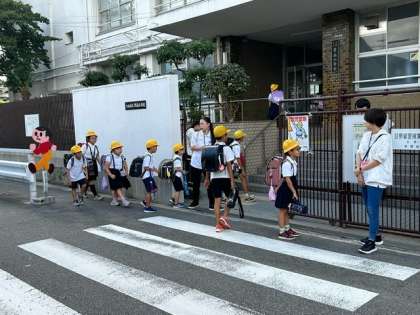 まだまだ陽ざしは厳しいですが、元気に子どもたちが集団登校してきました。