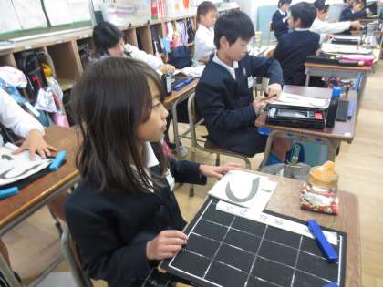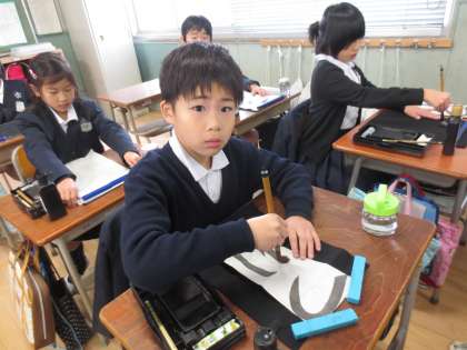「つり」練習のあと清書をします。落ち着いたしっかりした字に仕上げるでしょう。
