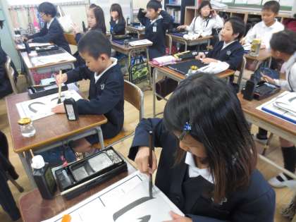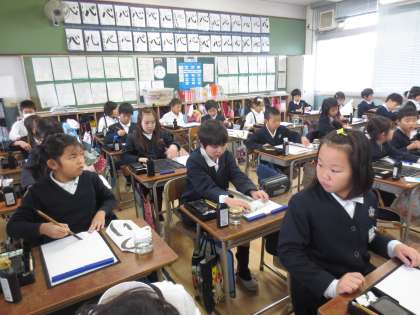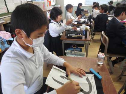 習字の学習です。ゆっくりていねいに・・・背筋をのばし姿勢をよくして書いています。