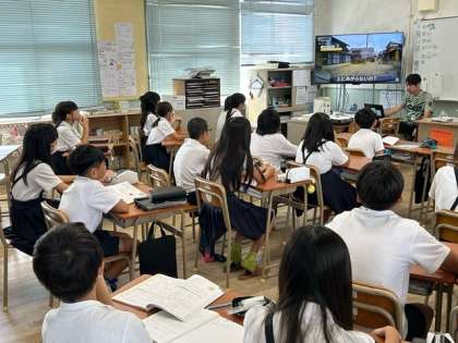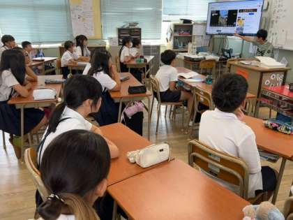 1組の教室をのぞくと、避難訓練の振り返りを行っていました。