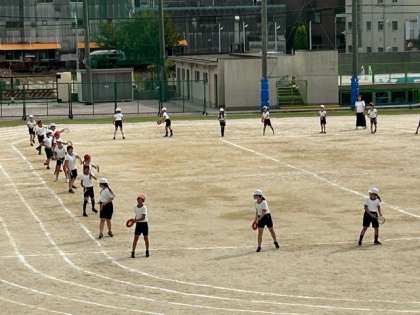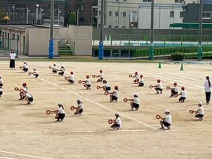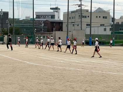 子どもたちが「島唄」のメロディーに乗せて、運動場でエイサーを踊っていました。