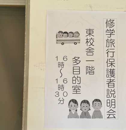 一か月後にせまった修学旅行、保護者の皆様には、事前準備及びお子さまの体調管理をよろしくお願いします。