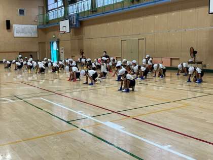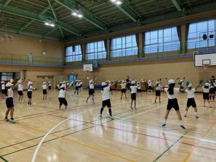 2年生の練習の様子です。雨でも元気に練習に取り組んでいます。