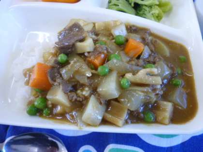だいこん、れんこん、にんじんが入ったカレーライスです。