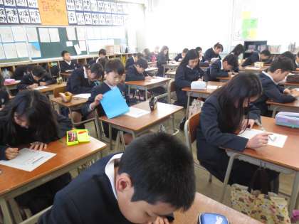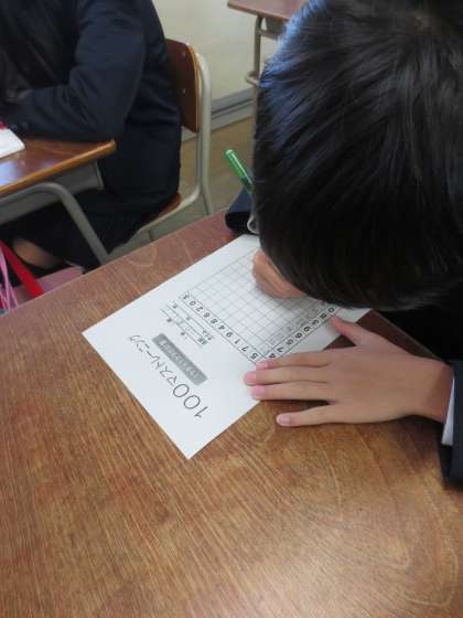 11/7(月)朝の時間を利用して5年生が「百マス計算」をしています。3分間の計算チャレンジです。
