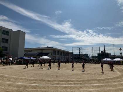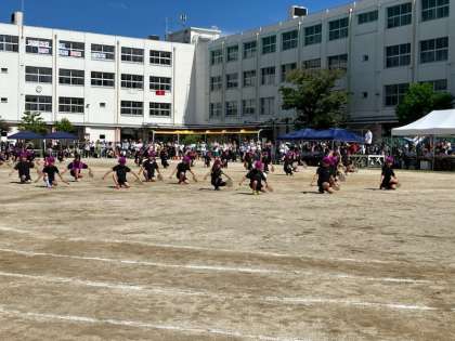 みんなで力を合わせて、パーランクーを使ったエイサーを披露しました。