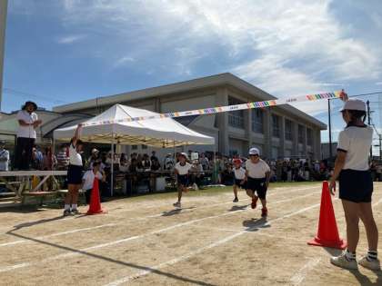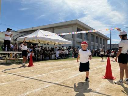 1年生には初めての運動会。でも、力いっぱいの走りで運動場を駆け抜けました。