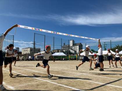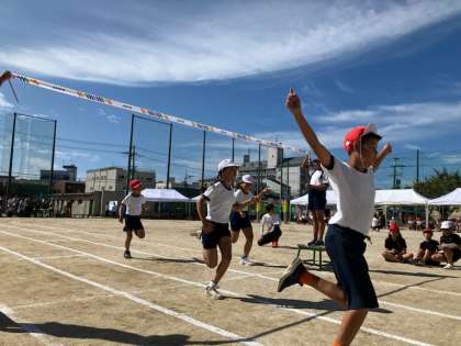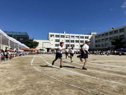 プログラム3番 4年生による「Challenge 徒競Four」の様子です。