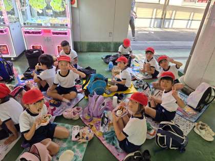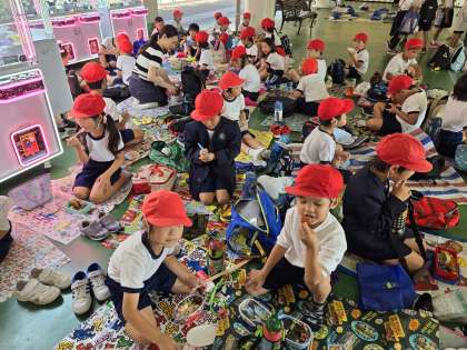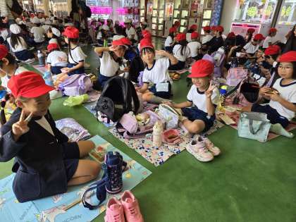 お友だちと一緒に食べています。今日のメニューは何だろな?