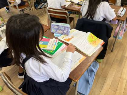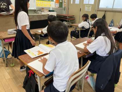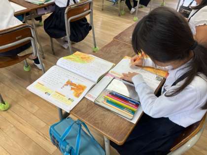 きつねとぶどうのお話を読み、自分の考えを書き表していました。