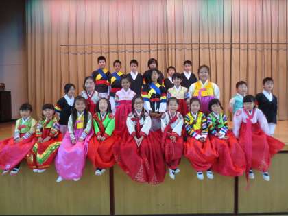 1年生から3年生の子どもたちは、歌を歌いました。次に、全員でチャンゴ、プク、ケンガリなどの楽器で演奏しました。2学期の間練習した成果を出し切ることができました。発表会後みんな頑張ったとほっとした気持ちでいっぱいでした。最後にハイポーズ!!