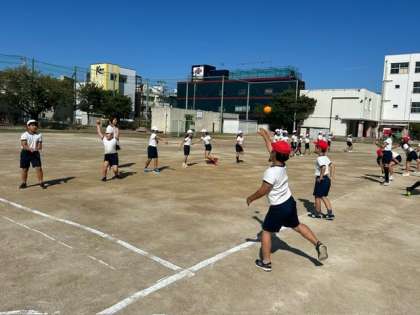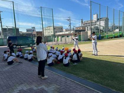 「オリックス」による出前授業で、4年生の子どもたちがベースボール(野球)を体験しました。