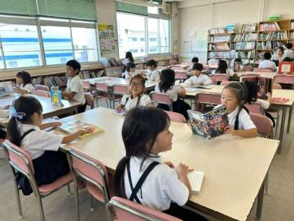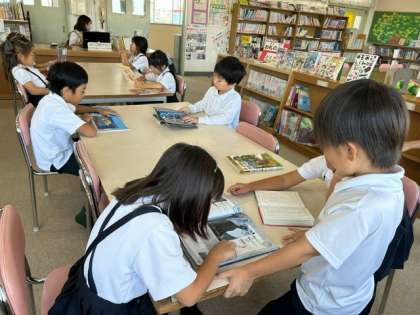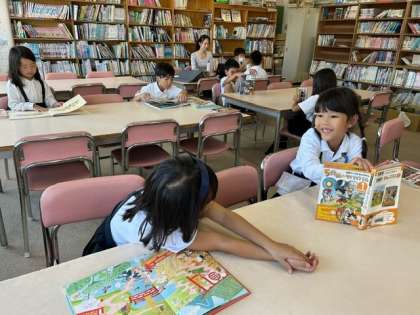 子どもたちが、図書館で思い思いに本を読んでいます。