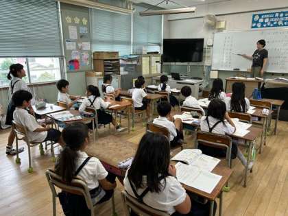 手を挙げ、指名された児童が「5の段」をスラスラと暗唱していました。