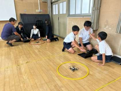 空中に浮き上がった瞬間、子どもたちから「オーッ」と歓声が沸きました。