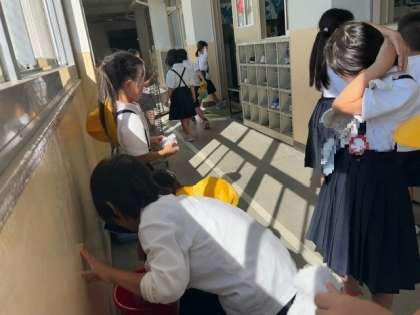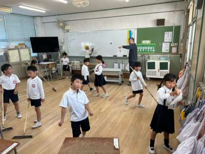 1年生の子どもたちが、教室や廊下をきれいにしていました。