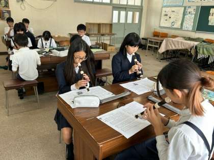 1組の音楽科では、「キリマンジャロ」をリコーダーで練習していました。