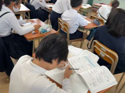 2組の算数科では、小数を分数であらわす方法を考えていました。