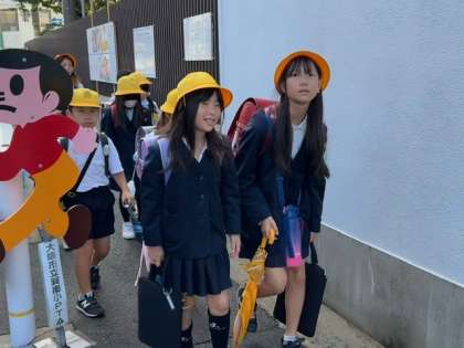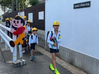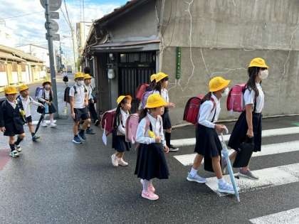 班長さんに続いて、班の児童も元気にあいさつをしています。