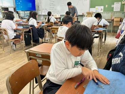 彫刻刀を使って浮世絵の「版画」制作に取り組んでいます。