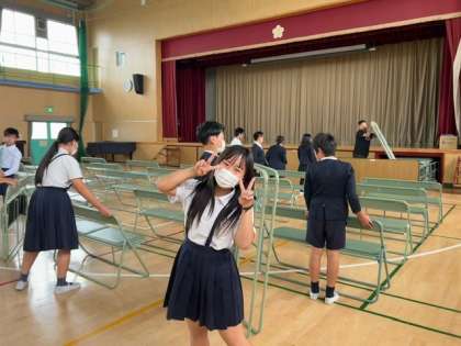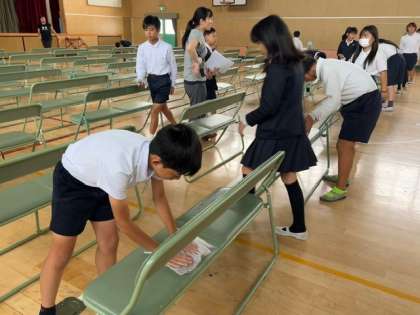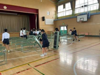 4限終了後のわずかな時間を使って、給食当番以外の6年生が、今日の「就学時健康診断」の会場設営をしてくれました。