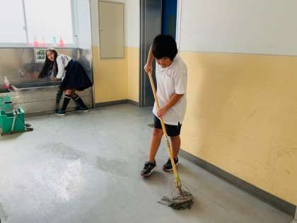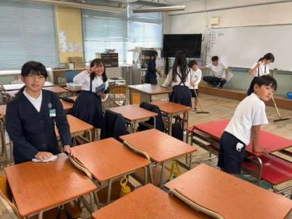 清掃活動にもくもくと取り組む、5年生の子どもたちです。