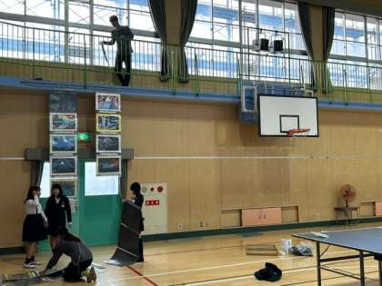 夕方、教職員作業で作品展の「会場設営」を行いました。