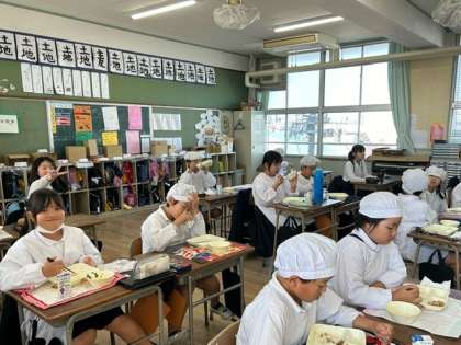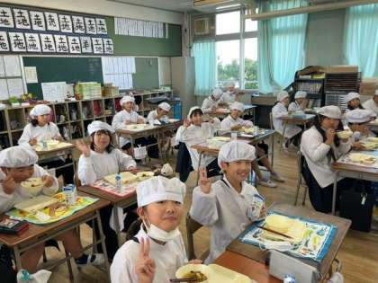 4年生の教室でも、子どもたちが、笑顔を向けてくれます。