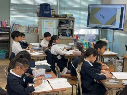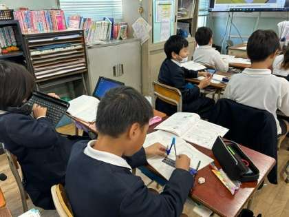 子どもたちが、半径3cmの円と直径10cmの円を「コンパス」を使ってノートに書いていました。