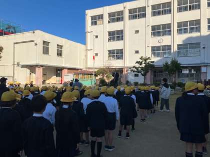 「笑顔の花咲く巽南小学校」であってほしいと思い、今日は笑顔の話をしました。