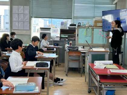 2組の算数科では、「新幹線はやぶさ号は3時間で660km進み、かがやき号は2時間で420km進みます。どちらが速いですか」の問題から「速さと時間の関係」や「時速」について考えました。