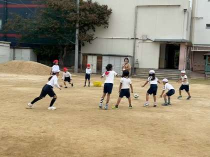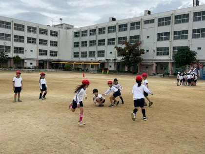 子どもたちが、お互いに声をかけあいながら自分たちで楽しくゲームをしていました。