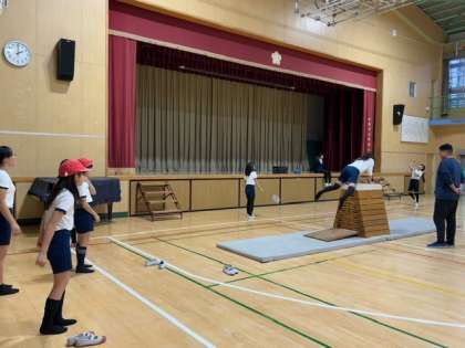 ラジオ体操・準備運動をした後、それぞれが自主的にボールやマットを使った運動をしています。