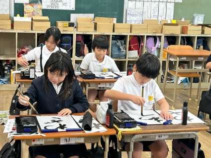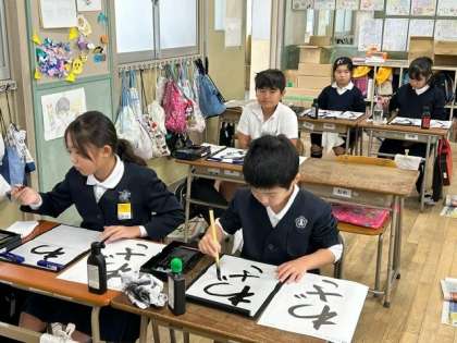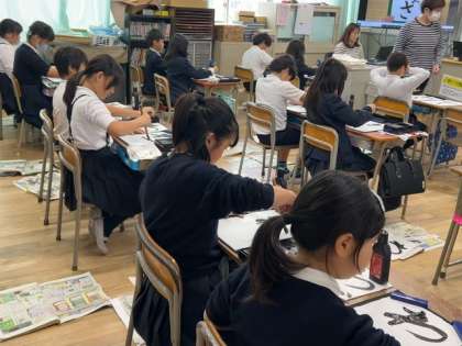 「折れ」や「折り返し」に注意して、子どもたちが姿勢よく書いていました。