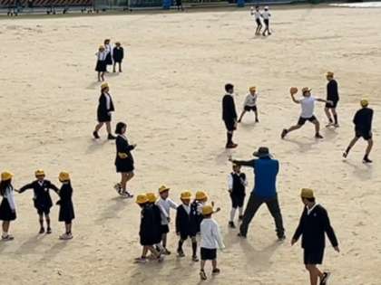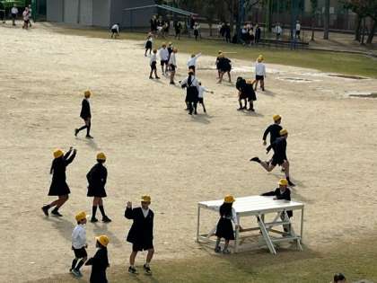 1年生から6年生までの子どもたちが、元気に外遊びをしています。