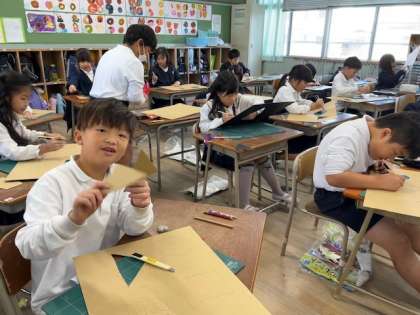 2組の図画工作科では「ひかりのプレゼント」をつくります。