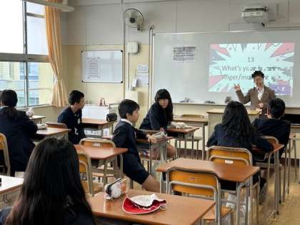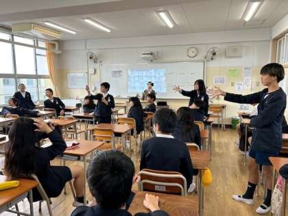 生徒会代表より説明を受けた後、初めに授業体験をしました。