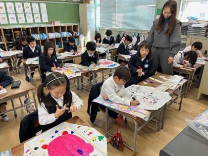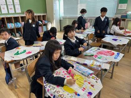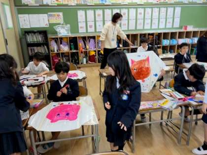 2組の図画工作科で「たこ(凧)」をつくっています。