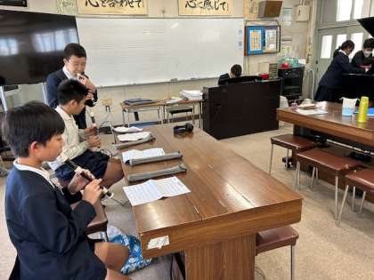 音楽室で、1組の子どもたちが「キセキ」の合奏練習をしていました。