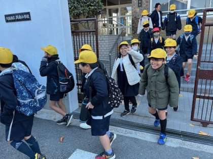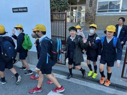 今日は、3年生の子どもたちが、社会見学で「くらしの今昔館」へ行きます。