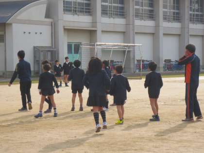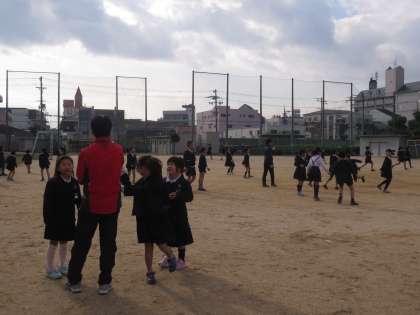 雨が降った後で遊べなかった運動場でしたが、晴れ間も見えて20分休憩時は運動場の赤旗をとりました。一斉に子どもたちは笑顔で運動場にでてきました。