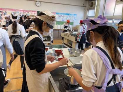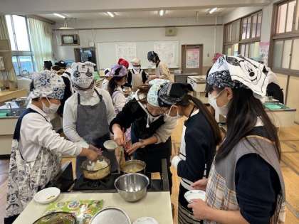 短冊切りやいちょう切りにした具材を鍋に入れ、「みそ」をといて入れました。いい香りが漂っています。