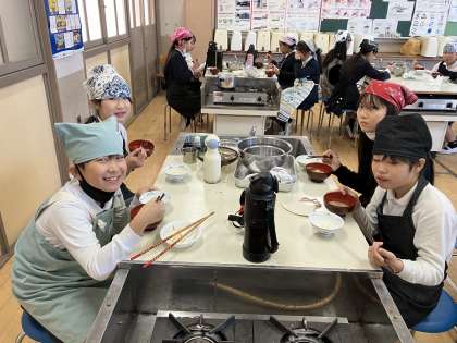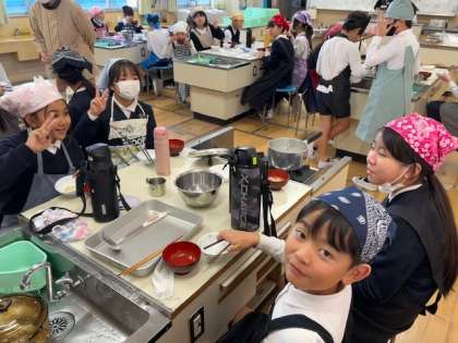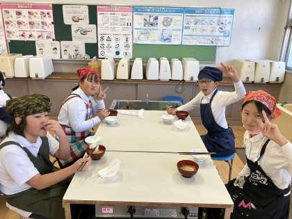 おちゃわんとおわんに、ごはんとみそ汁を入れて出来上がりです。