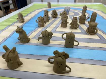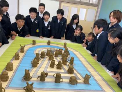 できた「はにわ」は古墳シートに並べて、みんなで鑑賞しました。