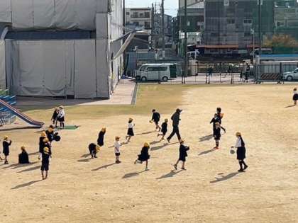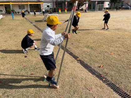 運動場では、鬼ごっこやなわとび・竹馬で 子どもたちが遊んでいました。