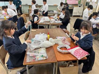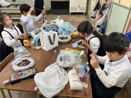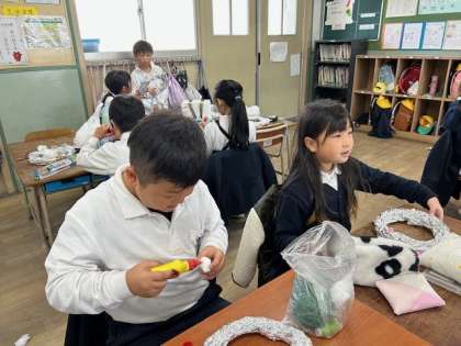 2組の子どもたちが、クリスマスのリースをつくっていました。