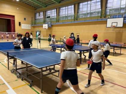 卓球クラブ、バドミントンクラブ、読書イラストクラブの活動のようすです。